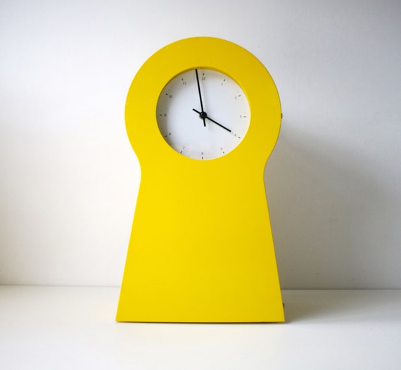 1995 Yellow Metal Keyhole Cabinet And Clock By Ikea Etsy