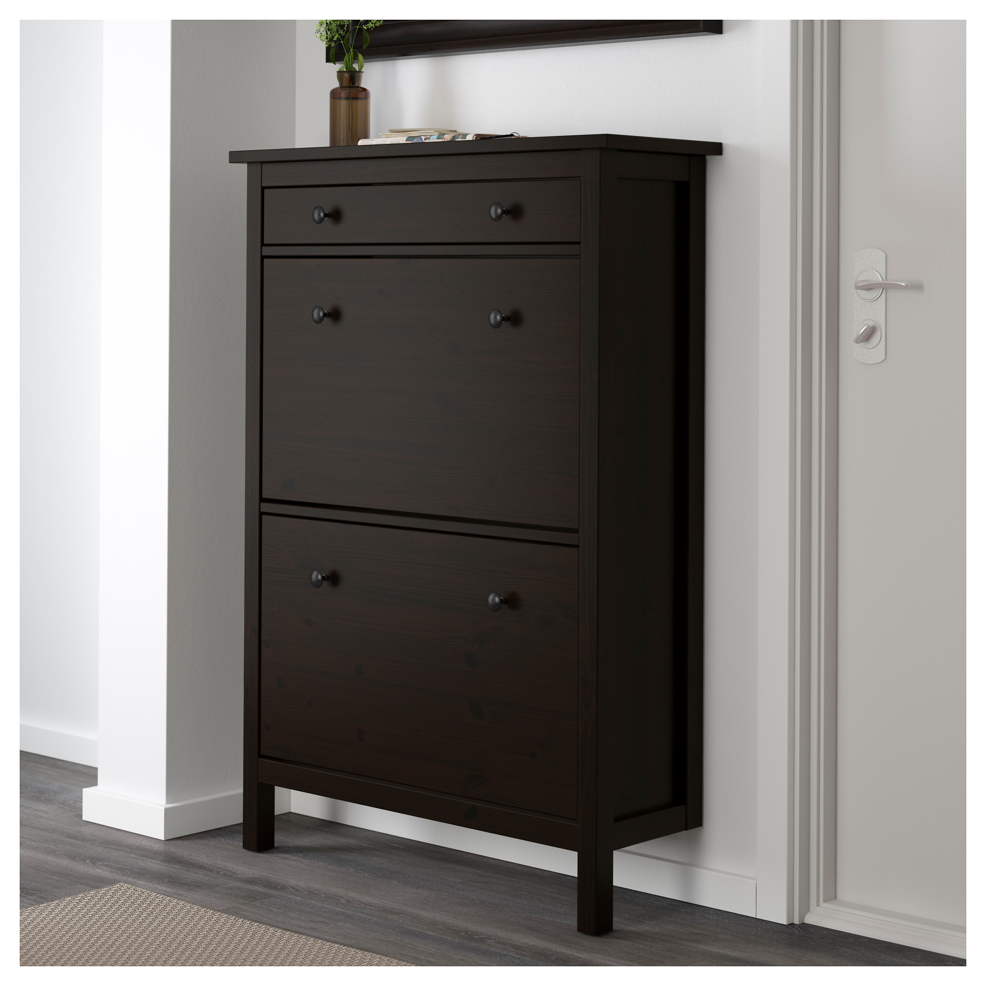 Hemnes Shoe Cabinet With 2 Compartments Black Brown Ikea Hong
